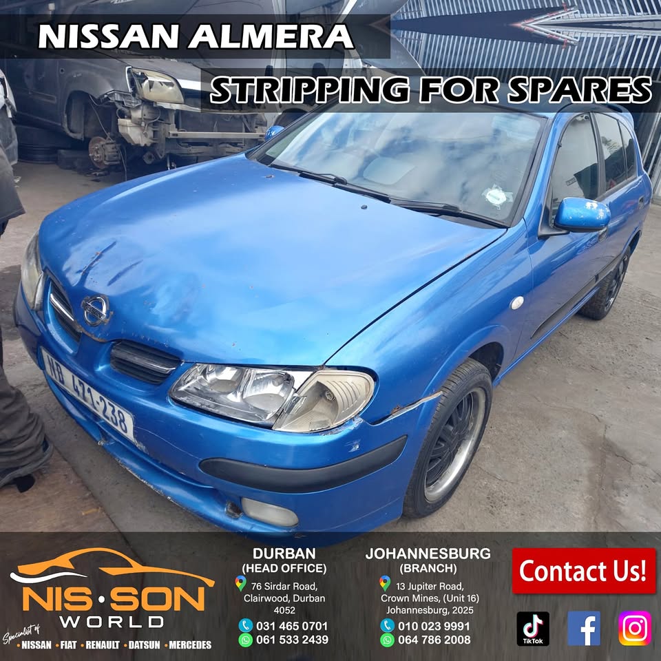 Specialist of : Nissan - Fiat - Renault - Datsun - Mercedes New & Used spares available Johannesburg (Branch) Call : Whatsapp : 064 786 2008view more 13 Jupiter Road, Crown Mines, Unit No.16 Durban (Head Office) Tel : Whatsapp : 061 533 2439view more 76 Sirdar Road, Clairwood