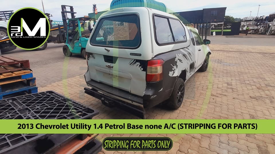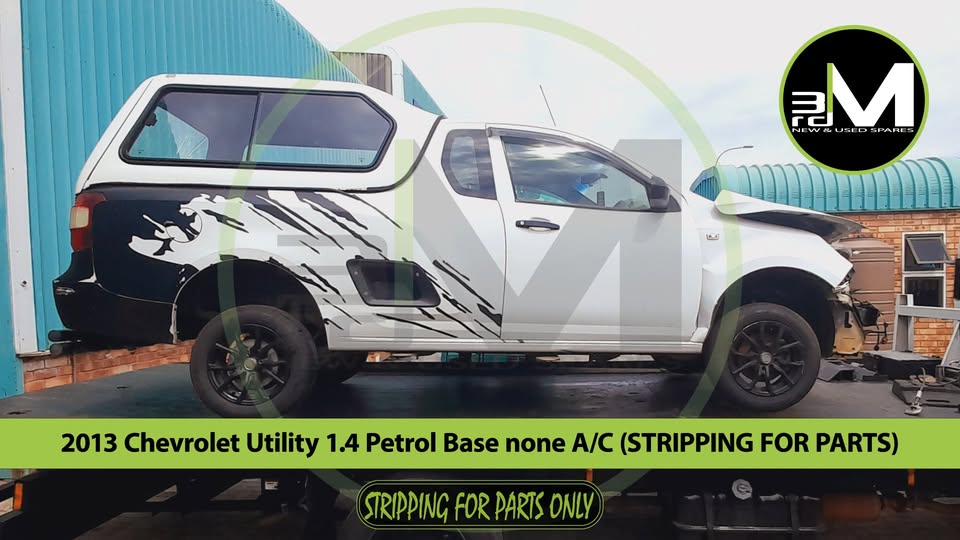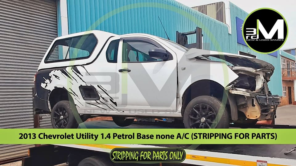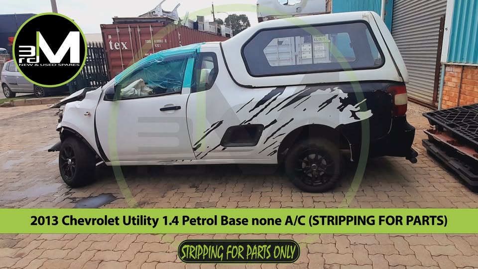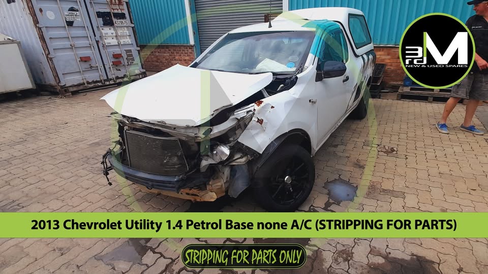 2013 Chevrolet Utility 1.4 Petrol Base none A/C (STRIPPING FOR PARTS) *** Code 4, no papers. Stripping for parts only. *** Vehicle specifications: 💠 #engine = 1.4 Litre Petrol Engine 💠 #transmission = 5 Speed Manual 💠 #drivetype = Front Wheel Driven 💠 #fueltype = Petrol ULP93/95 💠 #fuelcapacity = 56 Litres 💠 #tyres = 14 Inch alloys 💠 #paint = Athenian White, "40U" All our engines and manual gearboxes come with a 30-day guarantee, 7-day on all automatic gearboxes, terms and conditions apply. Use the contact details provided below, to enquire about parts from the listed vehicle; 0️⃣1️⃣1️⃣ 0️⃣4️⃣4️⃣ 3️⃣3️⃣8️⃣0️⃣ - LANDLINE ☎ - 011 044 3380view more 0️⃣6️⃣3️⃣ 5️⃣0️⃣4️⃣ 8️⃣8️⃣4️⃣1️⃣ - CHARLES 📱 - 063 504 8841view more 0️⃣6️⃣7️⃣ 1️⃣5️⃣6️⃣ 9️⃣2️⃣7️⃣4️⃣ - HILSON 📱 - 067 156 9274view more 0️⃣8️⃣3️⃣ 7️⃣0️⃣4️⃣ 2️⃣7️⃣7️⃣4️⃣ - BRUNO 📱 - Or, pay us a visit at the 3rd Millennium Yard, our address [∙⋮∙ Plus Code is; Ext 10, 728 Dame St, Rand Leases, Roodepoort, 1709 [∙⋮∙ RVHP+34 #millenniumspares #3rd_millennium_sa #3rdmillenniumparts #millenniumparts #bakkiespares #bakkieparts #chevroletutilityparts #chevroletutilityspares #carsforstriping #gmmotors #gmsouthafrica #utilitysports#generalmotors #chevroletengine #chevroletgearbox #roodepoort