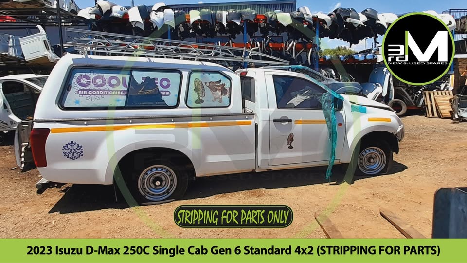 2023 Isuzu D-Max 250C Single Cab Gen 6 Standard 4x2 (STRIPPING FOR PARTS) >>> Stripping for parts only. <<< Vehicle specifications: 💠 #engine = 2.5 litre Intercooled Turbo Diesel, 4JA1-L 💠 #transmission = 5 Speed RWD Manual 💠 #drivetype = Rear Wheel Driven 💠 #fueltype = Diesel 50ppm 💠 #fuelcapacity = 80 Litre Tank 💠 #tyres = 16 Inch steels 💠 #paint = White [GAZ All our engines and manual gearboxes come with a 30-day guarantee, 7-day on all automatic gearboxes, terms and conditions apply. Use the contact details provided below, to enquire about parts from the listed vehicle; 0️⃣1️⃣1️⃣ 0️⃣4️⃣4️⃣ 3️⃣3️⃣8️⃣0️⃣ - LANDLINE ☎ - 011 044 3380view more 0️⃣6️⃣3️⃣ 5️⃣0️⃣4️⃣ 8️⃣8️⃣4️⃣1️⃣ - CHARLES 📱 - 063 504 8841view more 0️⃣6️⃣7️⃣ 1️⃣5️⃣6️⃣ 9️⃣2️⃣7️⃣4️⃣ - HILSON 📱 - 067 156 9274view more 0️⃣8️⃣3️⃣ 7️⃣0️⃣4️⃣ 2️⃣7️⃣7️⃣4️⃣ - BRUNO 📱 - Or, pay us a visit at the 3rd Millennium Yard, our address [∙⋮∙ Plus Code is; Ext 10, 728 Dame St, Rand Leases, Roodepoort, 1709 [∙⋮∙ RVHP+34 #millenniumspares, #3rd_millennium_sa, #3rdmillenniumparts, #millenniumparts, #bakkiespares, #bakkieparts, #dmaxgen6parts, #dmaxgen6spares, #carsforstriping, #roodepoort. || ○ SKU; → MV0691