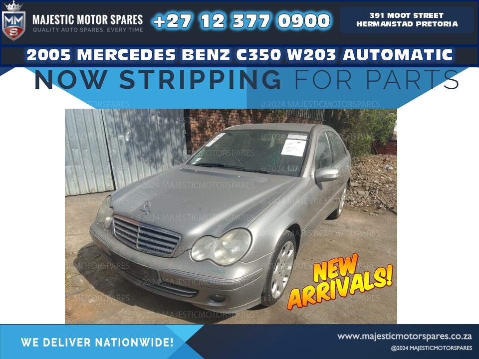 We are stripping a 2005 mercedes benz c350 w203 automatic for second-hand parts and spares. This vehicle features the M272 petrol engine and is in running condition. All parts are in good working order, including the engine, gearbox, suspension, interior, and more. Whether you're looking for body panels, electrical components, or mechanical parts, we have them available. Hurry while stock lasts!