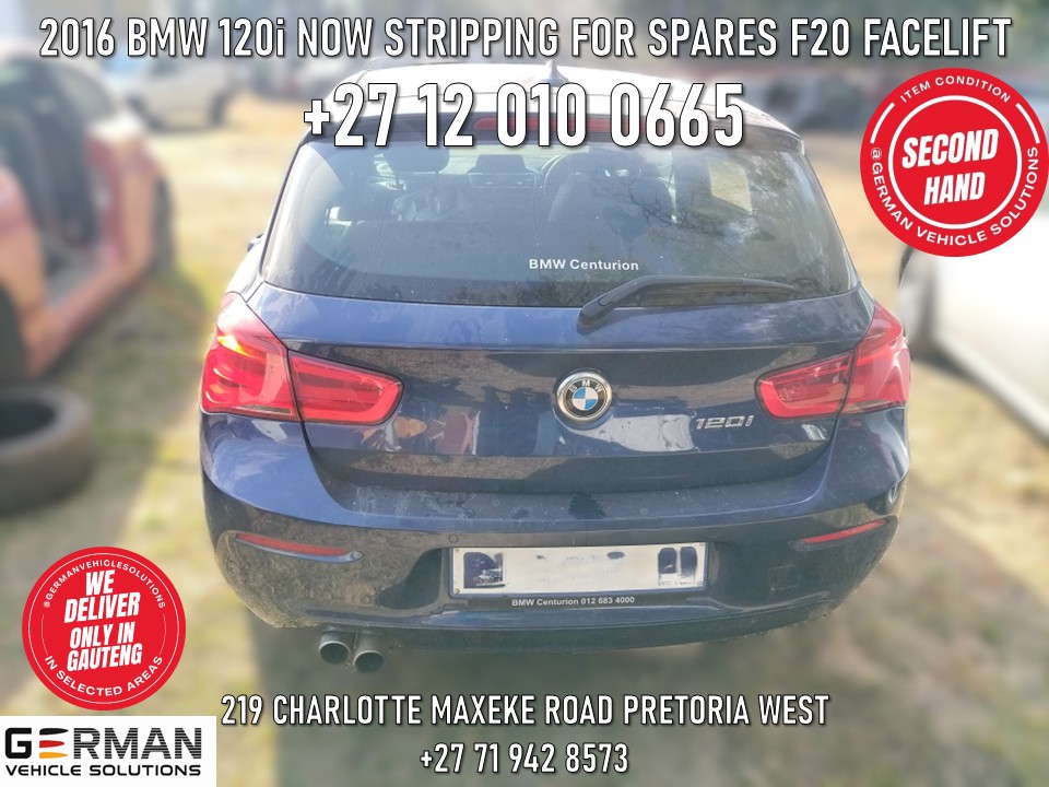 looking for genuine 2016 BMW 120i parts? German Vehicle Solutions is now stripping a 2016 BMW 120i f20 facelift for spares in Gauteng. every 2016 BMW 120i spare part is carefully removed and checked for quality, ensuring your BMW 120i f20 gets the best replacement parts. whether you need a 2016 BMW 120i engine, body panels, or interior components, we have a wide range of BMW 120i f20 facelift spares available. trust us for all your 2016 BMW 120i needs—contact us today for the best deals on BMW 120i f20 parts in Gauteng.