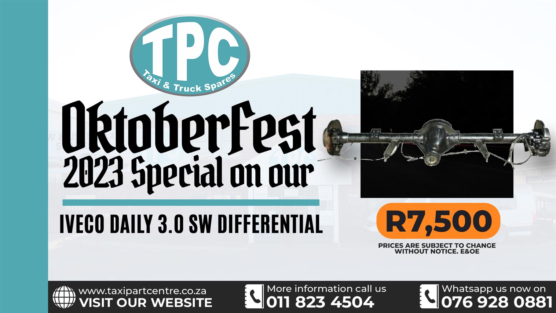 Hurry now for our Oktober Fest 2023 Special on our Iveco Daily 3.0 SW Diff now for only R7.500. Visit TPC - Taxi Part Centre now to take advantage of this month only special on parts.
