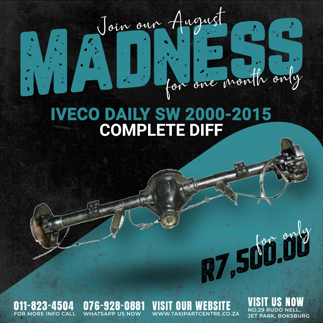 Join us for our August Madness Specials for this month only. Get this Iveco Daily SW 2000-2015 Complete Diff for only R22,500 while stocks last. Visit us now for this one month Special Now.