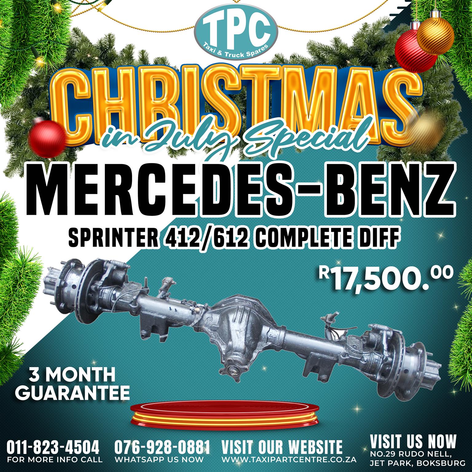Its Christmas in July and we are celebrating with these July only specials like a Mercedes-Benz Sprinter 412/612 Complete Diff going for only R17,500. Come get it now while stocks last.
