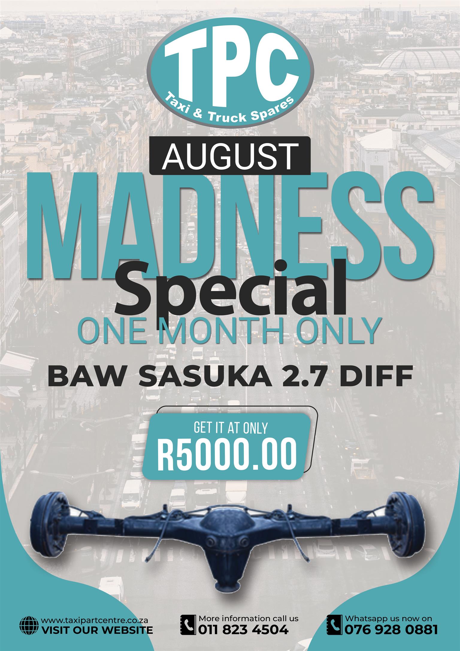 Find the best quality deals for a B.A.W Sasuka 2.7 Diff for only R5.000. Get this affordable deal now during our August Madness Specials at Truck Part Centre (TPC)