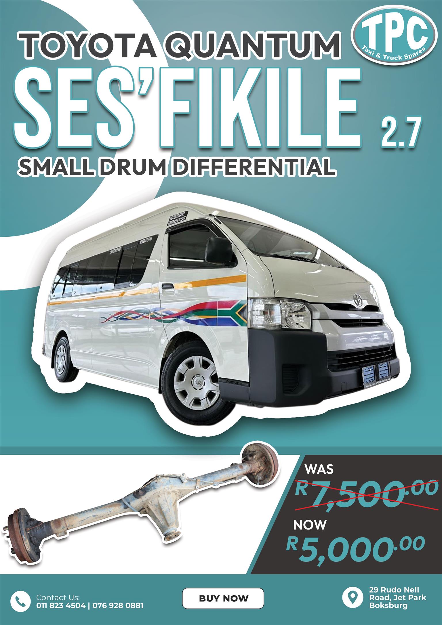 Special Toyota Quantum Ses'fikile 2.7 Small Drum Differential was R7,500 now R5,000