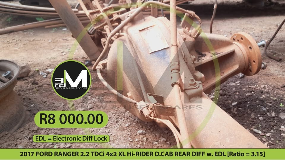 2017 FORD RANGER 2.2 TDCi 4x2 XL Hi-RIDER D.CAB REAR DIFF w. EDL [Ratio = 3.15 Used Front or Rear Differentials come with a 30-Day Guarantee and Warranty, terms & conditions apply. Our Diffs are sold complete and are salvaged from written off vehicles. All our diffs are OEM, Original Equipment Manufacturer. To ensure, we provide you with the correct Front or Rear Differential, specific to your vehicle's specifications, please speak to one of our experienced salesmen, via means provided by the current platform. Alternatively, use the contact details provided below; 0️⃣1️⃣1️⃣ 0️⃣4️⃣4️⃣ 3️⃣3️⃣8️⃣0️⃣ - LANDLINE ☎ - 011 044 3380view more 0️⃣6️⃣3️⃣ 5️⃣0️⃣4️⃣ 8️⃣8️⃣4️⃣1️⃣ - CHARLES 📱 - 063 504 8841view more 0️⃣6️⃣7️⃣ 1️⃣5️⃣6️⃣ 9️⃣2️⃣7️⃣4️⃣ - HILSON 📱 - 067 156 9274view more 0️⃣8️⃣3️⃣ 7️⃣0️⃣4️⃣ 2️⃣7️⃣7️⃣4️⃣ - BRUNO 📱 - 083 704 2774view more Or, pay us a visit at the 3rd Millennium Yard, our address [∙⋮∙ Plus Code is; Ext 10, 728 Dame St, Rand Leases, Roodepoort, 1709 [∙⋮∙ RVHP+34 || ○ SKU; → MV0669-R.DIFF