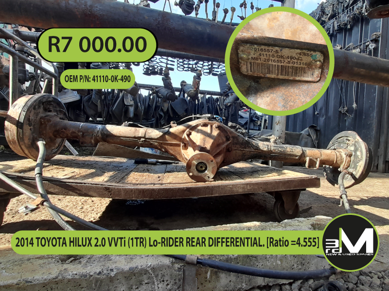 2014 TOYOTA HILUX 2.0 VVTi (1TR) Lo-RIDER REAR DIFFERENTIAL. [Ratio =4.555]