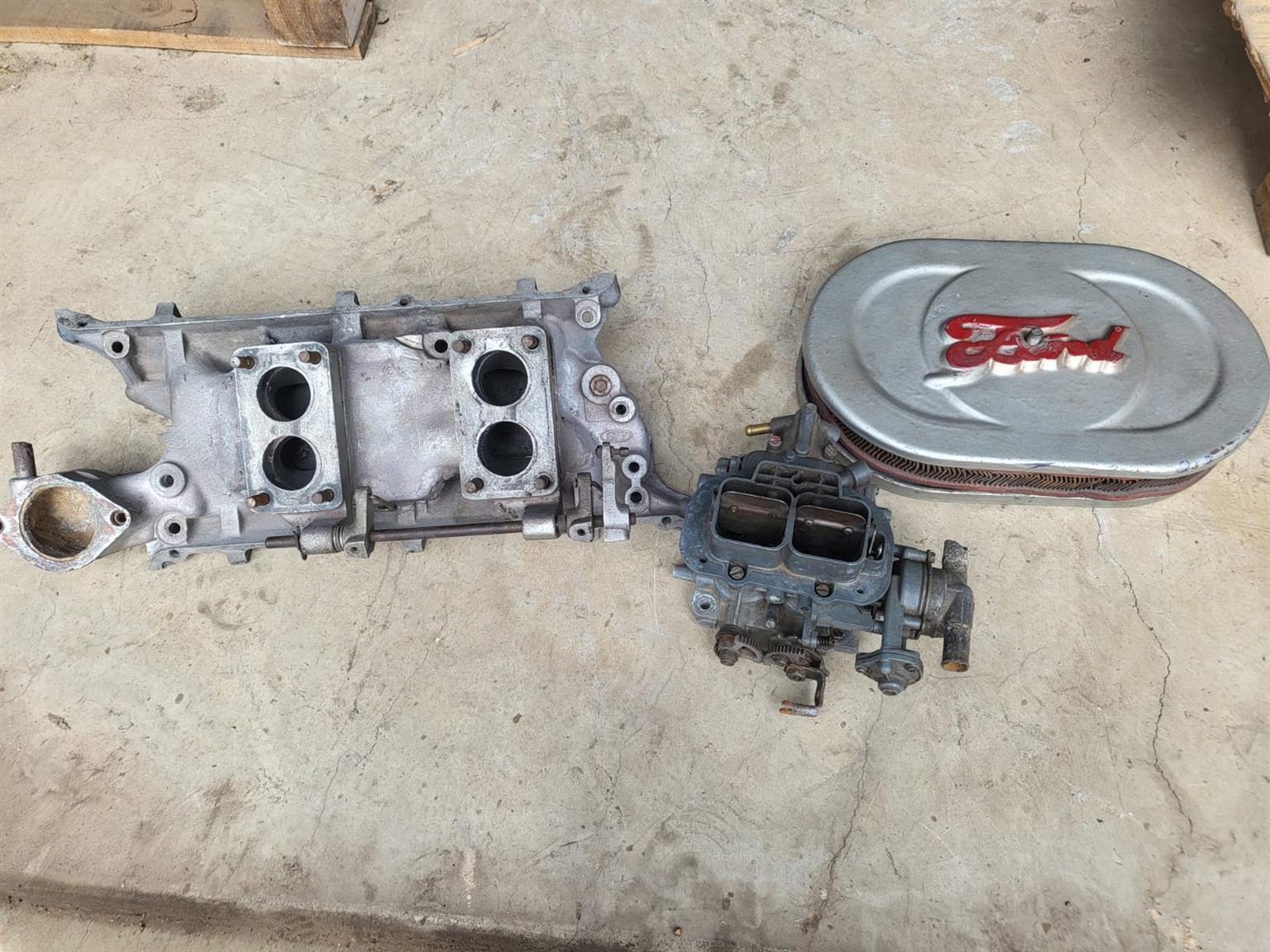Ford V6 performance intake for twin 38 weber carbs, with air cleaner and a 38 weber carb