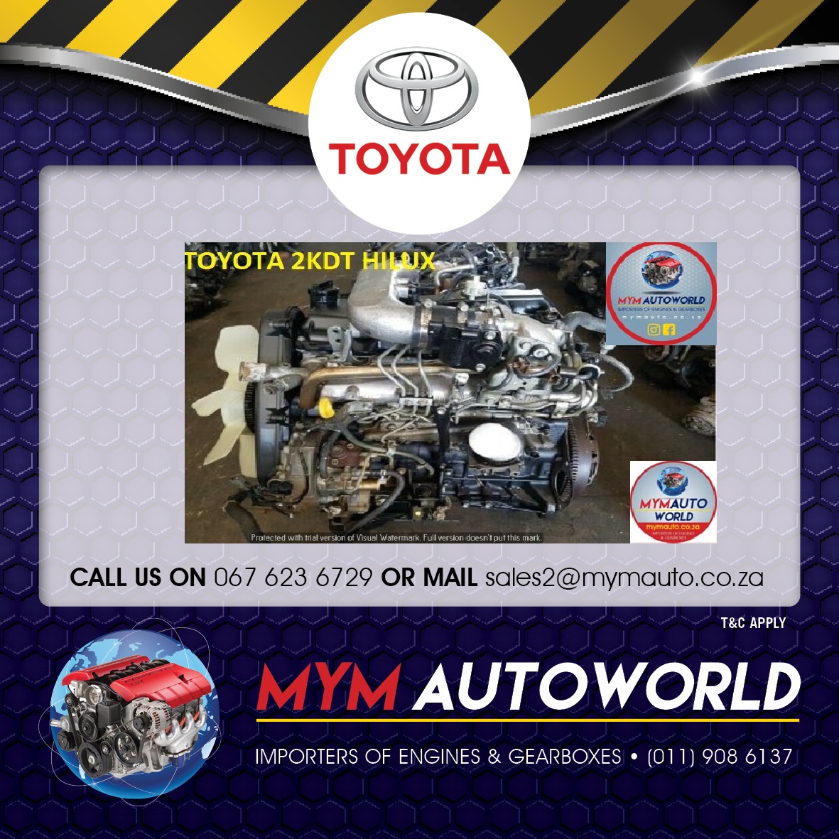 TOYOTA HILUX/FORTUNER 2.5L TOP TURBO 2KD ENGINE2 BOSWORTH STREET ALRODE ALBERTON