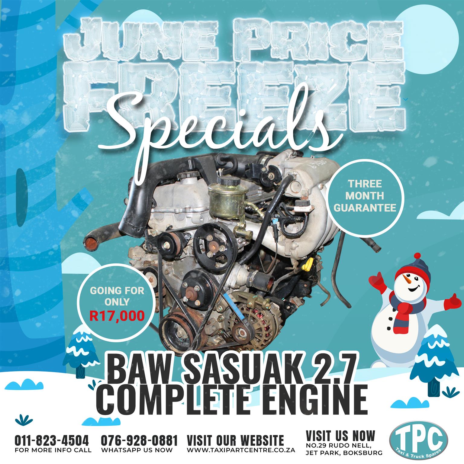 Be ready for our June Price Freeze Special for June only by getting the best parts to get you back on the road like a BAW Sasuka 2.7 Complete Engine going for only R17,000. Get it now while stocks last.