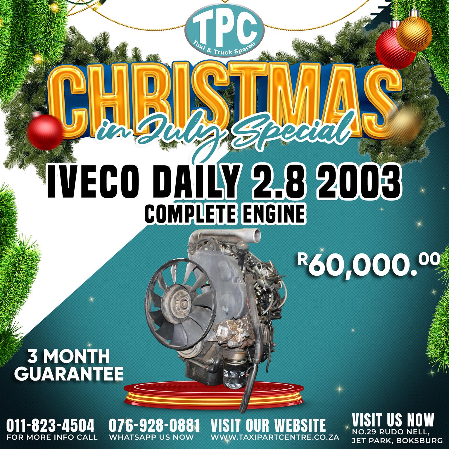Its Christmas in July and we are celebrating with these July only specials like a Iveco Daily 2.8 2003 Complete Engine going for only R60,000. Come get it now while stocks last.