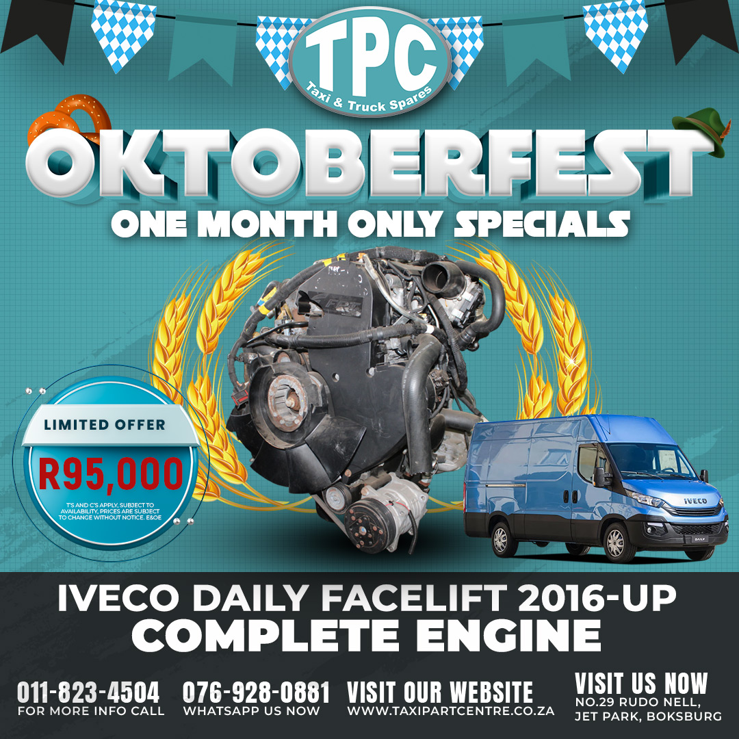 Welcome to our Oktoberfest One Month Only Specials. Get the best prices for the best parts like a Iveco Daily Facelift 2016-Up Complete Engine going for only R95,000. Come get it now while stocks last.