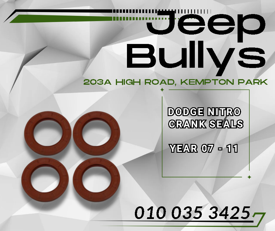 Crank Seals for Dodge NitroYear 07 -11 Contact us on Condition and PricingWe sell new and used partswww.kalaharijeepspares.co.za