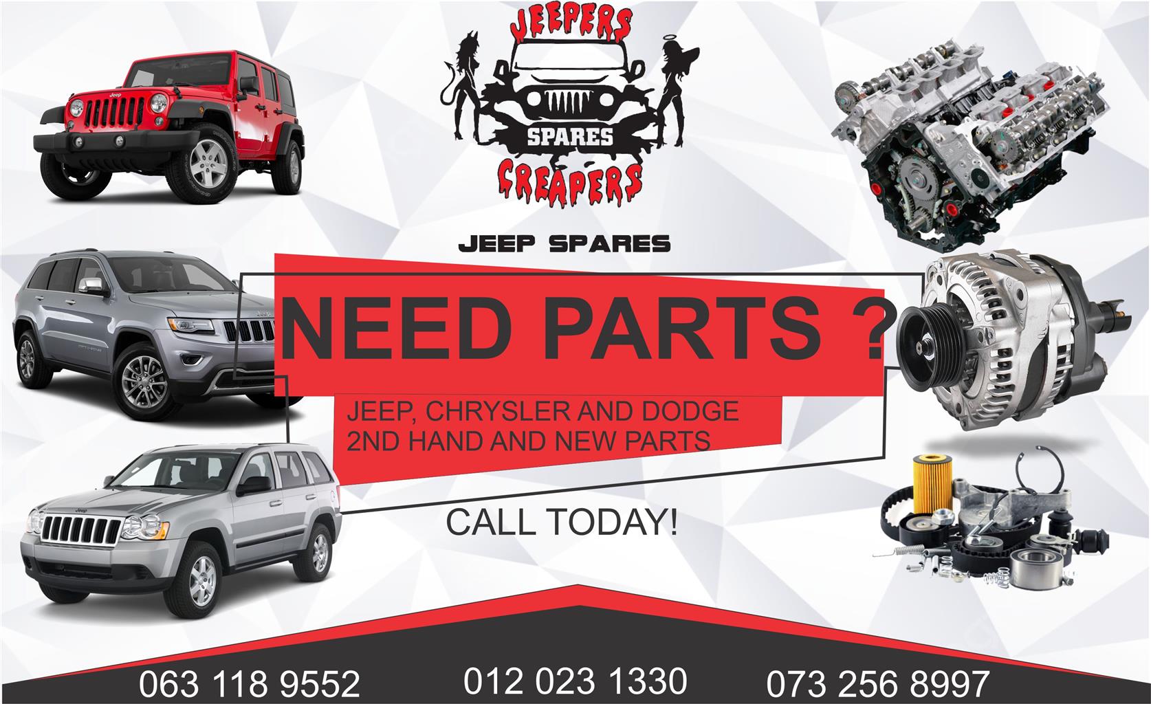 We specialize in Jeep Chrysler and dodge 2nd hand parts, new parts, engine parts, service parts and accessories. we also have a fully equipped workshop to assist you in fitment, services and repairs.