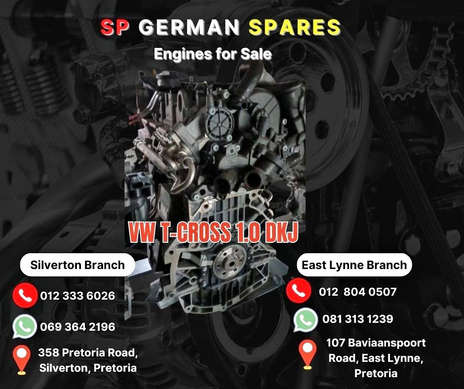 Now selling a VW T-Cross 1.0 DKJ engine—perfect for replacements or repairs! 📱 Call/WhatsApp: 📍 Visit us at: 🔹 107 Baviaanspoort Road, East Lynne, Pretoria 🔹 358 Pretoria Road, Silverton, Pretoria Contact us today for the best deals on VW engines
