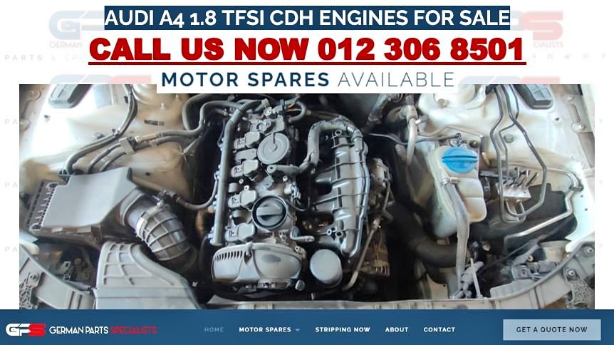 AUDI A4 1.8 TFSI CDH USED ENGINES FOR SALE Automotive parts store for Audi We deliver and courier nationwide. Payment on delivery available. Our website: https://germanparts-specialist.co.za/ https://wa.me/+27727402210view more https://wa.me/+27816890718view more Landline: 012 306 8501view more E-mail: Please leave us a review: https://g.page/r/CcrBNb5GEdkJEAI/review 439 Vom Hagen Street, Pretoria West Kindly note we don’t advertise prices German Parts Specialist - Suppliers of second-hand used and new replacement spare parts. We offer quality and affordable OEM products new and used replacement spare parts for Audi. We are an automotive scrapyard and parts store with a wide range of vehicles that we salvage and break/ strip for spare parts. We stock a variety of aftermarket replacement parts. We stock parts such as engines, engines replacement spare parts, gearboxes, body spare parts, suspension, steering, auto electrical parts, rims and second- hand tyres and more. Please be advised that the parts are subject to availability. #auditfsi #audia1 #audia3 #audia4 #audia5 #audia5 #audia6 #audia7 #audia8 #q3 #q5 #q7 #audis5 #audis6 #audis3 #auditt #quattro #audirs3 #rs3 #rs4 #sportback #audiusedspares #audinewparts