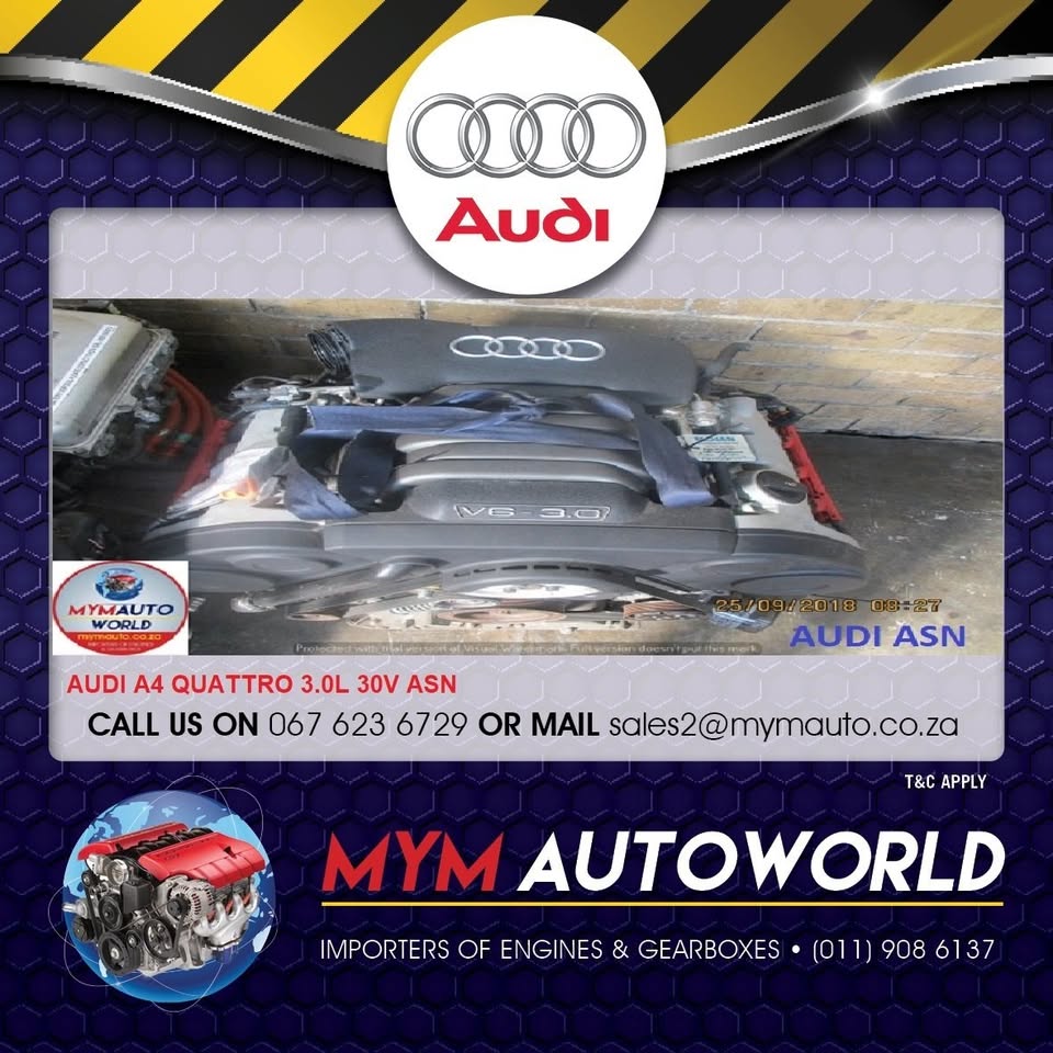 MINI COOPERS 1.6L W10B16 ENGINE AUDI A4 QUATTRO 3.0L 30V ASN ENGINE GOLF 5-6 1.4L TSI CAX ENGINE AUDI A6 2.4L 24V BDW ENGINE We Are The Largest Importers Of Second Hand Engines And Gearboxes In South Africa. We Have Over 5000 Quality Second Hand Imported Engines And Gearboxes In Stock. We Are Stockiest Of The Following Brands: Alfa Romeo, BMW, Chevrolet, Daewoo, Honda, Hyundai, Isuzu, Kia, Land Rover, Mazda, Mercedes Benz, Nissan, Opel, Subaru, Suzuki, Toyota, Volvo, Volkswagen ,Jeep And Much More. We Take Pride In Giving You The Lowest Prices, Best Quality, Low Mileage, Wide Selection Of Secondhand Engines!!! You Can Find Us At: #Alberton: 2 Bosworth Street Alrode Alberton opposite the Licensing Department Contact Us: 0600142819 Sales Team: MICKY 0600142819, Faizal 0600142819, Shafik 0600142819, Obayd 0600142819, Desiree: 0600142819, Lerato 0600142819, Abdul 0600142819, Zandi 0600142819, Essop 0600142819