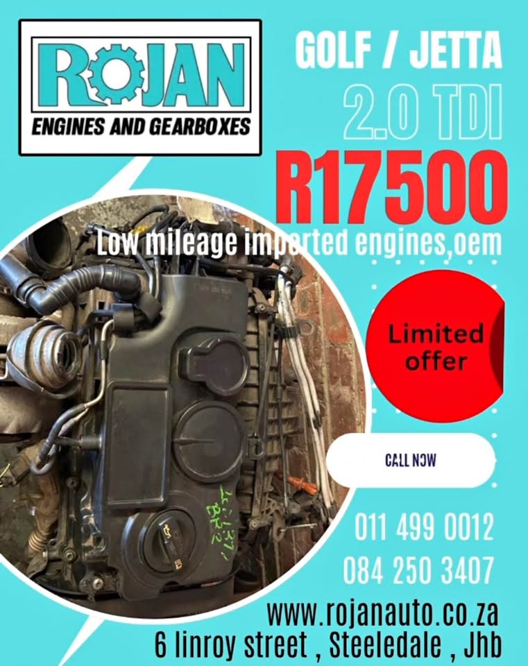 ππ¨ Exciting news for all VW enthusiasts! π§β¨ The powerful Golf/Jetta 2.0 TDI engine is now in stock at Rojan Engines and Gearboxes, ready to give your ride the boost it deserves! π Whether you're looking to enhance performance or need a reliable replacement, this engine is your ticket to smoother drives and better fuel efficiency. All this for just R17,500! π° Don't miss out on this opportunity to upgrade your vehicle with one of the best engines around. Give us a call todayβyour car will thank you later! π