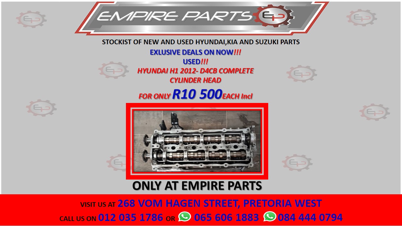 HYUNDAI H1 2012- D4CB COMPLETE CYLINDER HEADPrice - R10500.00Make - HyundaiCondition - UsedContact Empire Parts for more information.