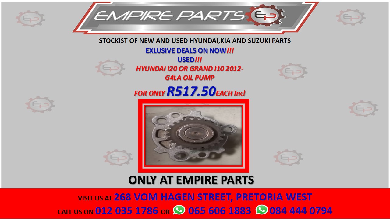 HYUNDAI I20 OR GRAND I10 2012- G4LA OIL PUMPPrice - R517.50Make - HyundaiCondition - UsedContact Empire Parts for more information.