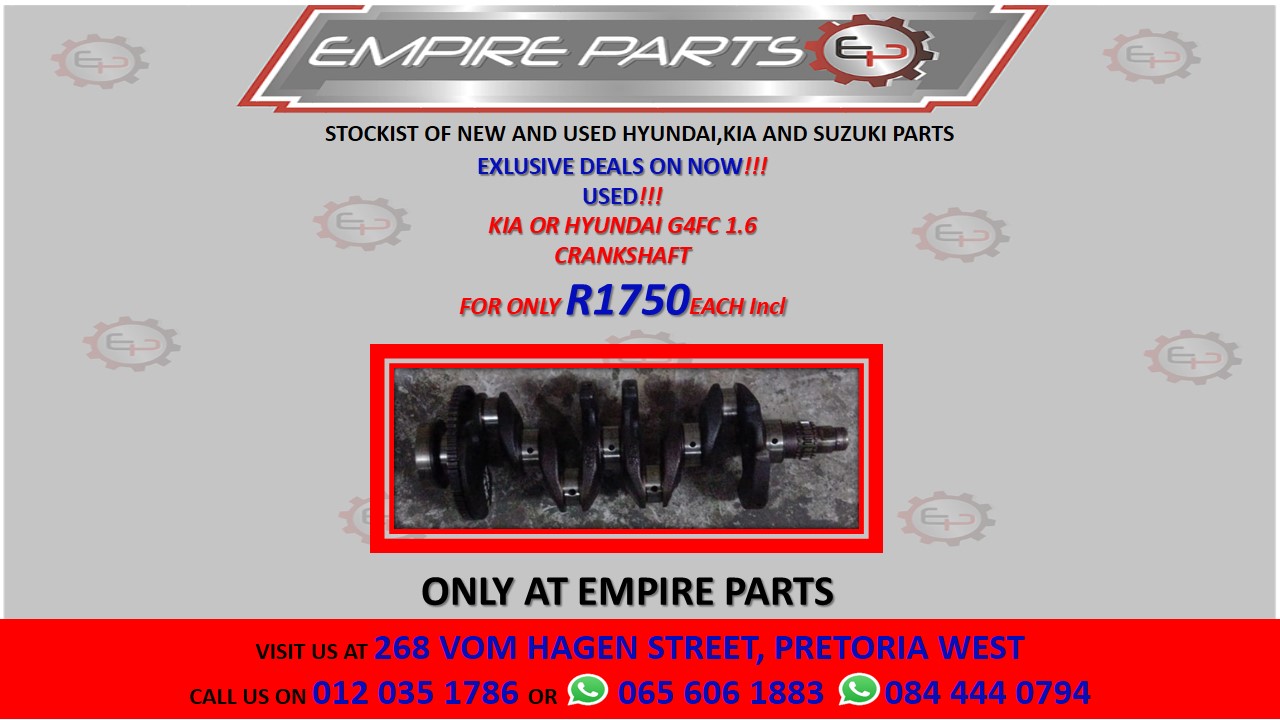 KIA OR HYUNDAI G4FC 1.6 CRANKSHAFTPrice - R1750.00Make - HyundaiCondition - UsedContact Empire Parts for more information.