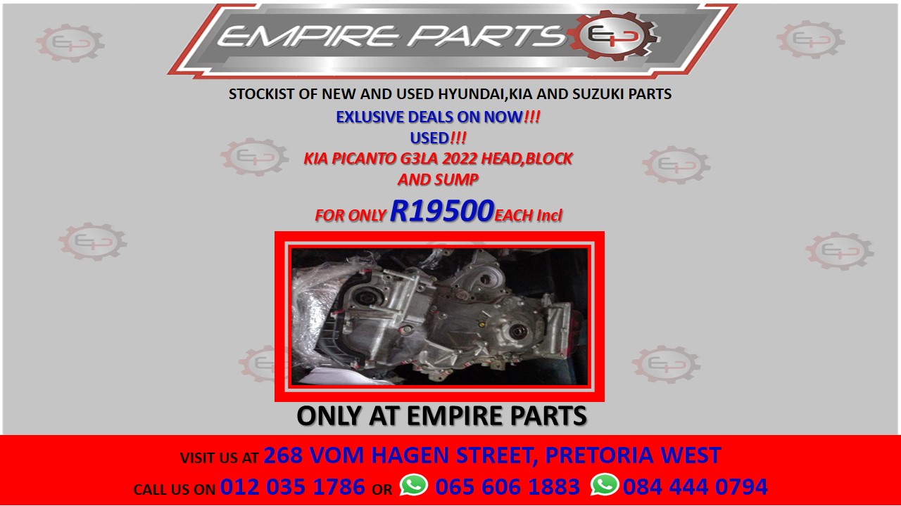 KIA PICANTO G3LA 2022 HEAD,BLOCK AND SUMP Price - R19500.00Make - KiaCondition - UsedContact Empire Parts for more information.