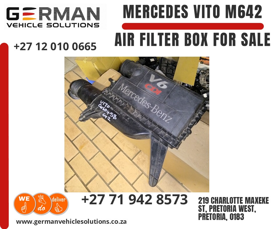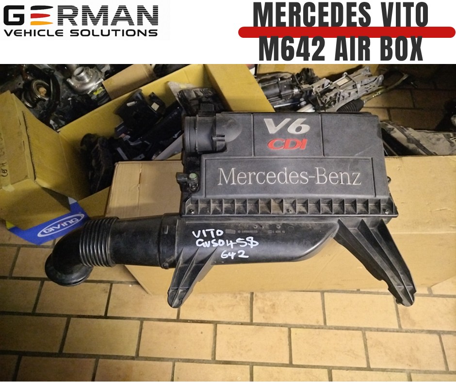 Keep your Mercedes Vito M642 running smoothly with this genuine second-hand air filter box. Removed from a well-maintained engine, this air box ensures proper airflow to maintain performance and fuel economy. The housing is intact with no cracks or broken clips, making it an ideal replacement for damaged or missing units. Compatible with various Mercedes Vito M642 models. This part helps prolong engine life and maintain factory efficiency. Avoid unnecessary dealership costs—opt for this reliable used part instead. Please note: we do not deliver nationwide. Clients must arrange their own courier. Get in touch before it’s gone!
