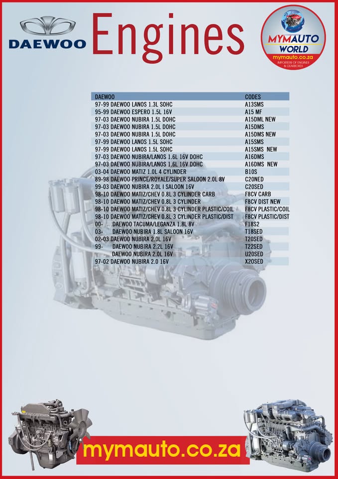 USED IMPORTED DAEWOO ENGINES AND GEARBOXES