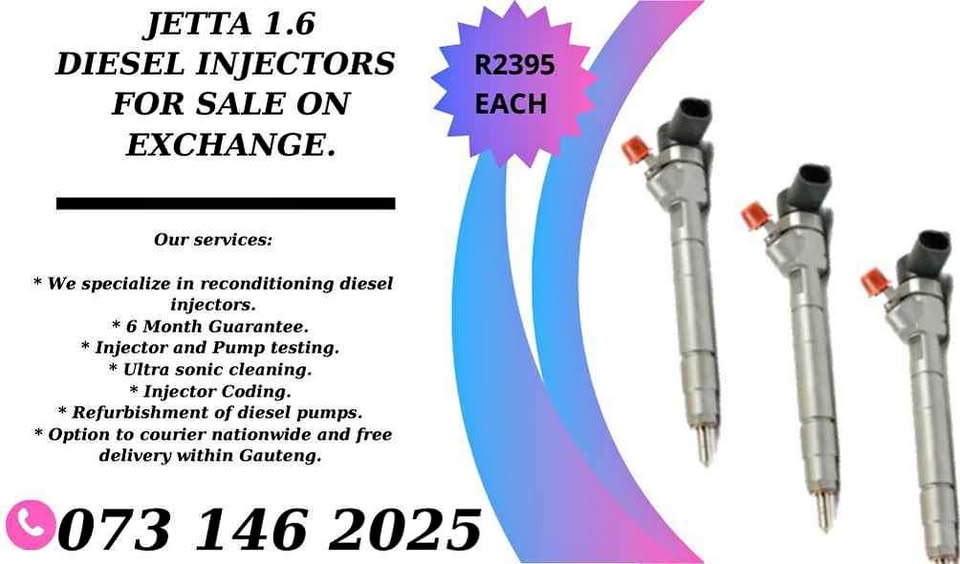 Diesel injector services. Our services: * We specialize in reconditioning diesel injectors. * 6 Month Guarantee. * Injector and Pump testing. * Ultra sonic cleaning. * Injector Coding. * Refurbishment of diesel pumps. * Option to courier nationwide and free delivery within Gauteng. Call / WhatsApp Nadia @