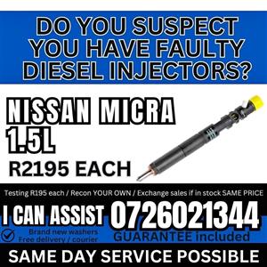 We can recon your original injectors for an affordable price or sell u service exchange. Testing is also available for R195 each. We included a six months gaurentee, free delivery or courier and new washers with each purchase made. SAME DAY SERVICE AVAILABLE.