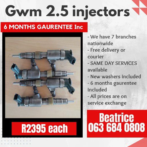We can recon your original injectors for an affordable price or sell u service exchange. Testing is also available for R195 each. We included a six months gaurentee, free delivery or courier and new washers with each purchase made. SAME DAY SERVICE AVAILABLE.
