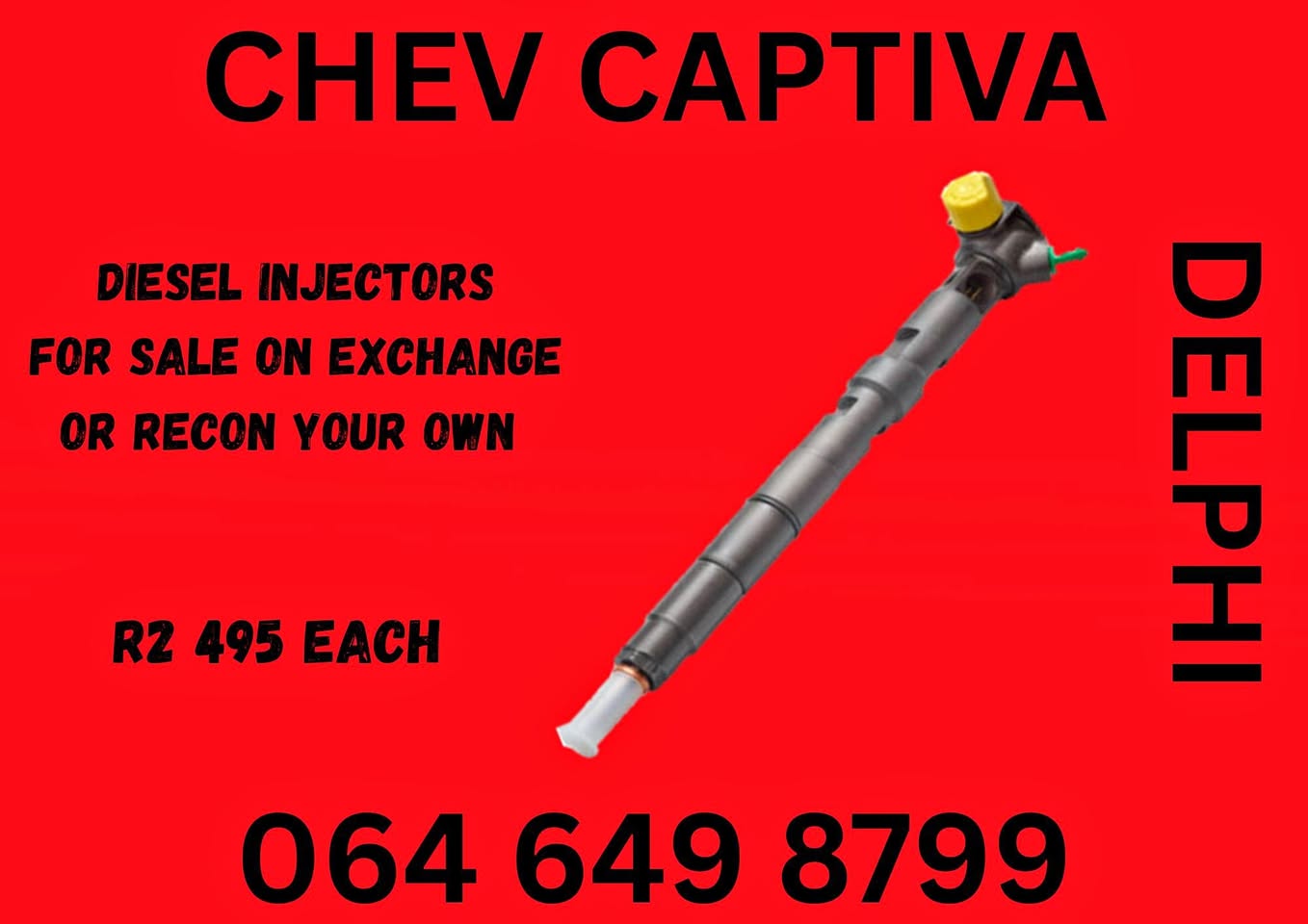 Power loss, Black smoke, Hard start, unusual engine loss, engine misfire... Time to replace your injectors, Let me help you! Other services include: Injector or Pump testing. Refurbishment of pumps, Refurbishment of Injectors 6 Months Guarantee With branches across South Africa we can help you with a smile. Call / WhatsApp me, Thea @