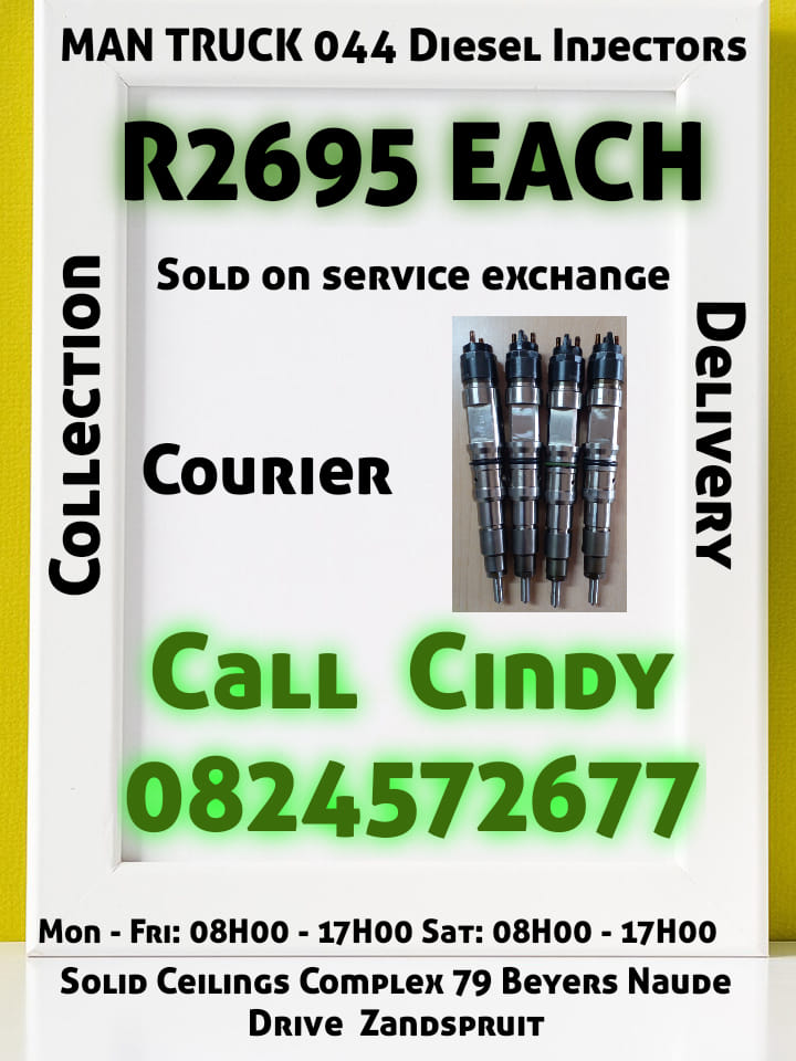 MAN TRUCK 044 R2695 each Sold on service exchange We collect & deliver in JHB as well as courier 6 months guarantee free copper washers Sales Agent: Cindy Address: Solid Ceilings 79 Beyers Naude Drive Zandspruit Business Hours: Mon - Fri: 08H00 17H00 Sat: 08H00 - 13H00