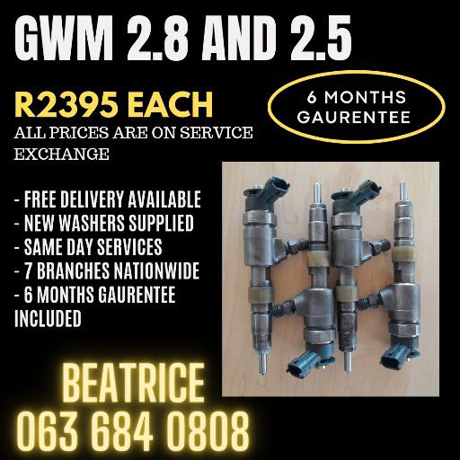 We can recon your original injectors for an affordable price or sell u service exchange. Testing is also available for R195 each. We included a six months gaurentee, free delivery or courier and new washers with each purchase made. SAME DAY SERVICE AVAILABLE.