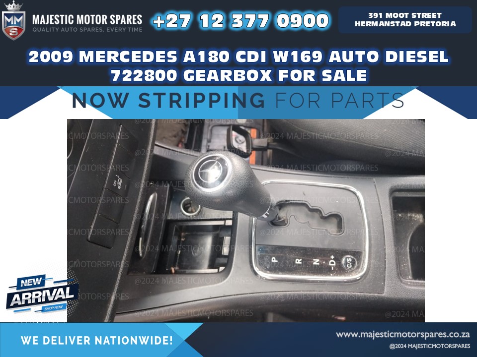 Find a reliable replacement transmission gearbox for your Mercedes A180 CDI W169. This 722800 automatic transmission gearbox is in excellent condition and ready for installation. Perfect for ensuring smooth performance. Contact us at Majestic Motor Spares in Pretoria to get this quality gearbox, with delivery options in Gauteng and nationwide courier services.