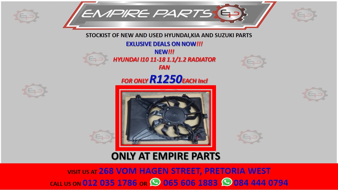 HYUNDAI I10 11-18 1.1/1.2 RADIATOR FANTASTICPrice - R1250.00Make - HyundaiCondition - NewContact Empire Parts for more information.