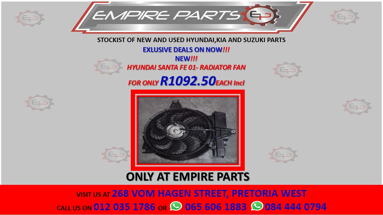 HYUNDAI SANTA FE 01-RADIATOR FAN . More details:Price - R1092.50Make - HyundaiCondition - NewContact Empire Parts for more information.