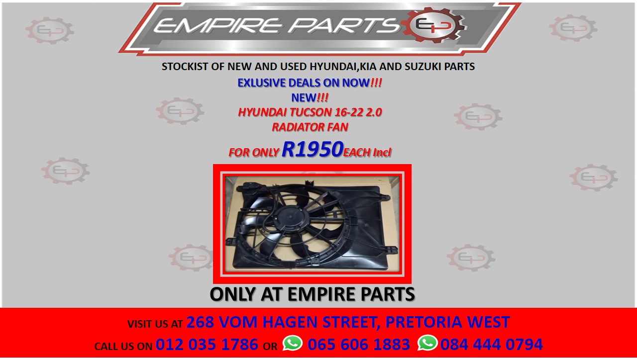 HYUNDAI TUCSON 16-22 2.0 RADIATOR FANPrice - R1950.00Make - HyundaiCondition - NewContact Empire Parts for more information.