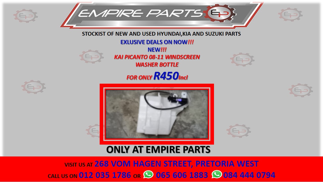KAI PICANTO 10-11 WINDSCREEN WASHER BOTTLE FOR SALE. More details:Price - R450.00Condition - NewContact Empire Parts for more information.