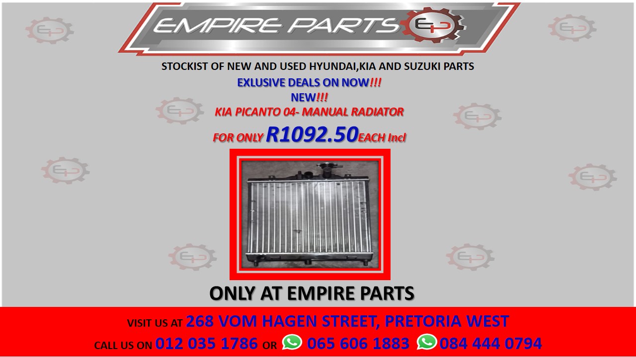 KIA PICANTO 04- MANUAL RADIATOR . More details:Price - R1092.50Make - KiaCondition - NewContact Empire Parts for more information.