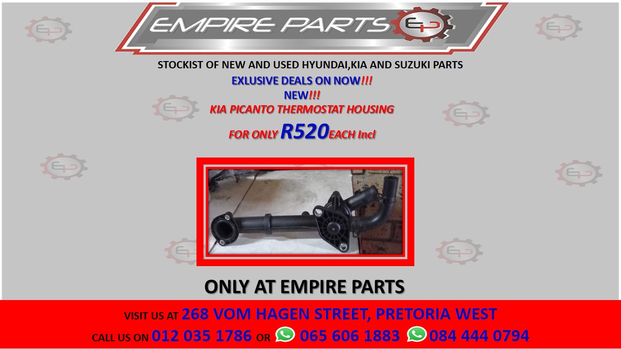 KIA PICANTO THERMOSTAT HOUSING . More details:Price - R520.00Make - KiaCondition - NewContact Empire Parts for more information.