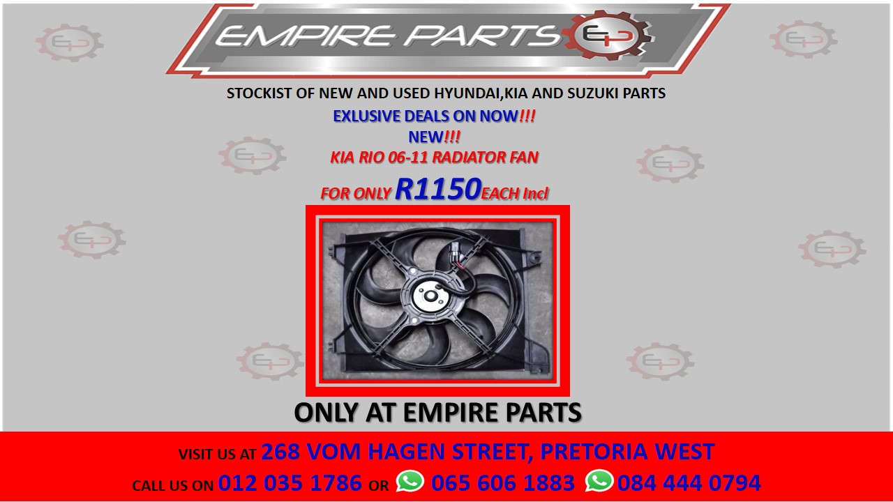 KIA RIO 06-11 RADIATOR FAN . More details:Price - R1150.00Make - KiaCondition - NewContact Empire Parts for more information.