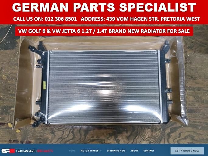 VW GOLF 6 & VW JETTA 6 1.2T / 1.4T BRAND NEW RADIATOR FOR SALE Automotive parts store for VW Volkswagen We deliver and courier nationwide. Payment on delivery available. Our website: https://germanparts-specialist.co.za/ https://wa.me/+27727402210view more https://wa.me/+27816890718view more Call / WhatsApp: Our sales Team David: 072 740 2210view more Lincoln: 081 689 0718view more Landline: 012 306 8501view more E-mail: Please leave us a review: https://g.page/r/CcrBNb5GEdkJEAI/review 439 Vom Hagen Street, Pretoria West