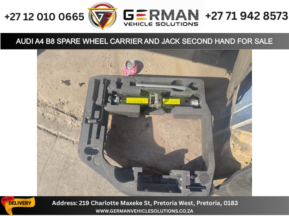 Second-hand spare wheel carrier bracket and jack mechanism for Audi A4 B8 models. The set is structurally intact and fully functional, ready for emergency tyre changes or to complete your missing boot equipment. Reliable original components that fit snugly in the rear storage space. Ideal for daily drivers or rebuilds.