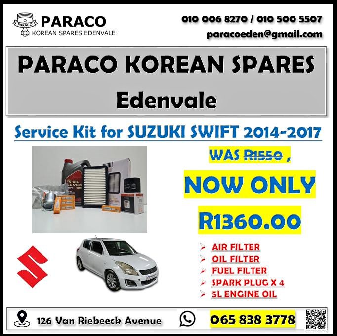 AIR FILTER OIL FILTER FUEL FILTER SPARK PLUG X 4 5L ENGINE OIL NOW ONLY R1360.00 Contact us and get a quote: 📞 / 📲 Visit us: 📍 126 Van Riebeeck Ave, Edenvale, 1609