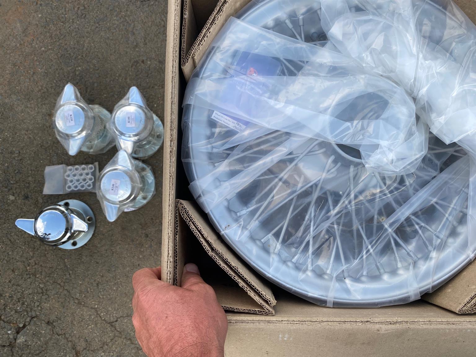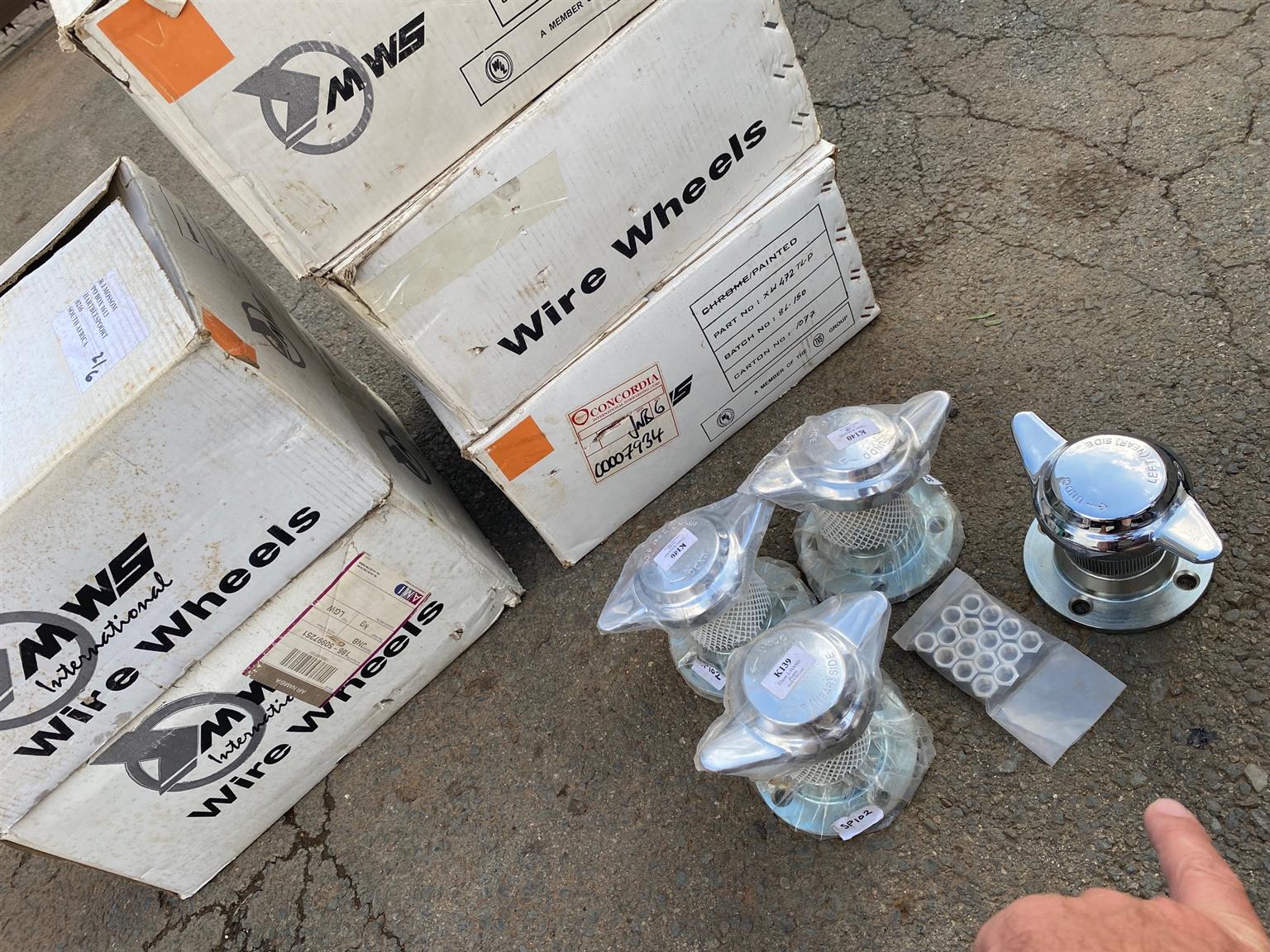 Wire wheels set of 5 BRAND NEW with 52mm hubs, 2 eared knock on LHS & RHS & Nuts as per pictures. Tubeless wire 5x15 inch 72 spoke MWS International 472S to fit: Volvo P1800, Jaguar MG Austin Healey English Classic, Vintage Alfa Romeo Sprint Triumph TR7 Ford etc. Easy Clean,