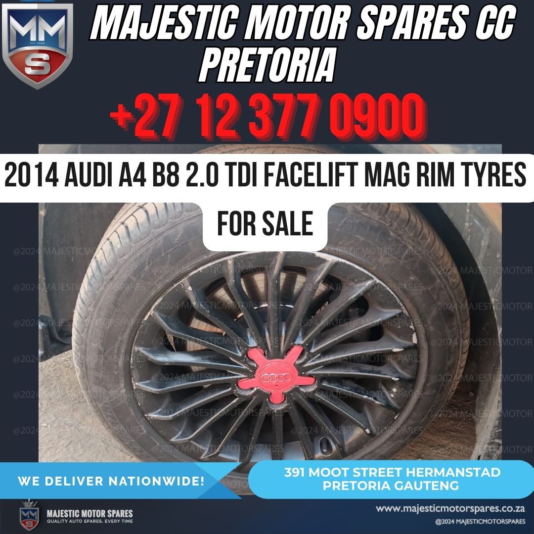 Need mag rim tyres for your 2014 Audi A4 B8 2.0 TDI facelift? Majestic Motor Spares in Pretoria, Gauteng, has top-quality second-hand mag rim tyres for the Audi A4 B8 facelift 2.0 TDI. Our Audi A4 B8 facelift mag rims are perfect for enhancing your vehicle's look and performance. Contact us today to secure your 2014 Audi A4 B8 2.0 TDI facelift mag rim tyres.