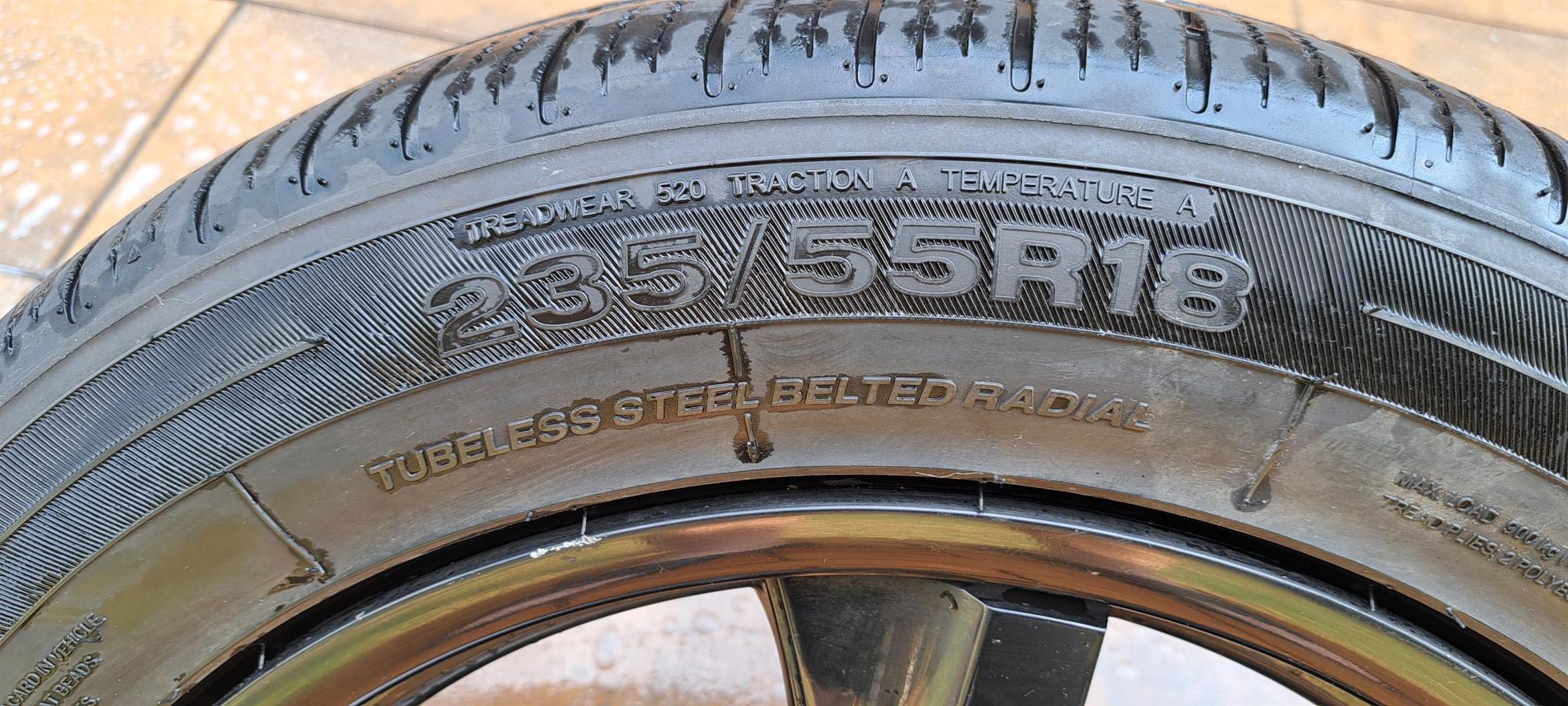 18 inch 5 x114. 235/55 tyres. Very good condition. Was on a Huyndai IX35 but will also fit most Kia, Honda models as well as Chevrolet Captiva.