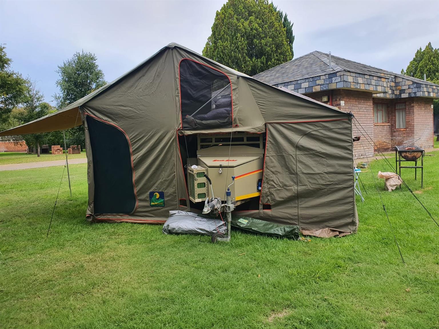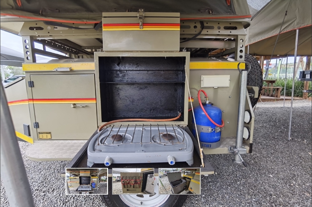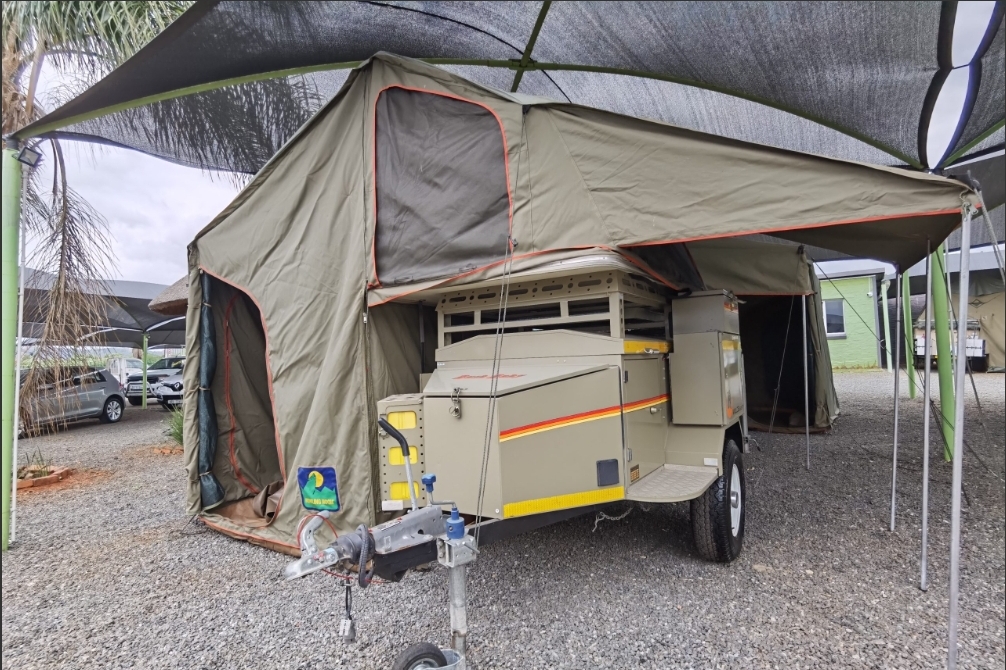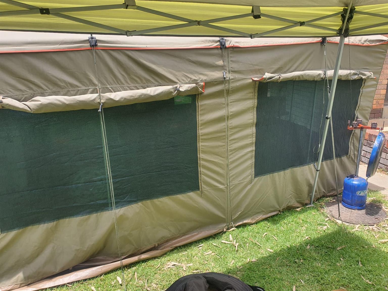 - 360-degree tent with sides – Tent surrounds trailer completely if all set up